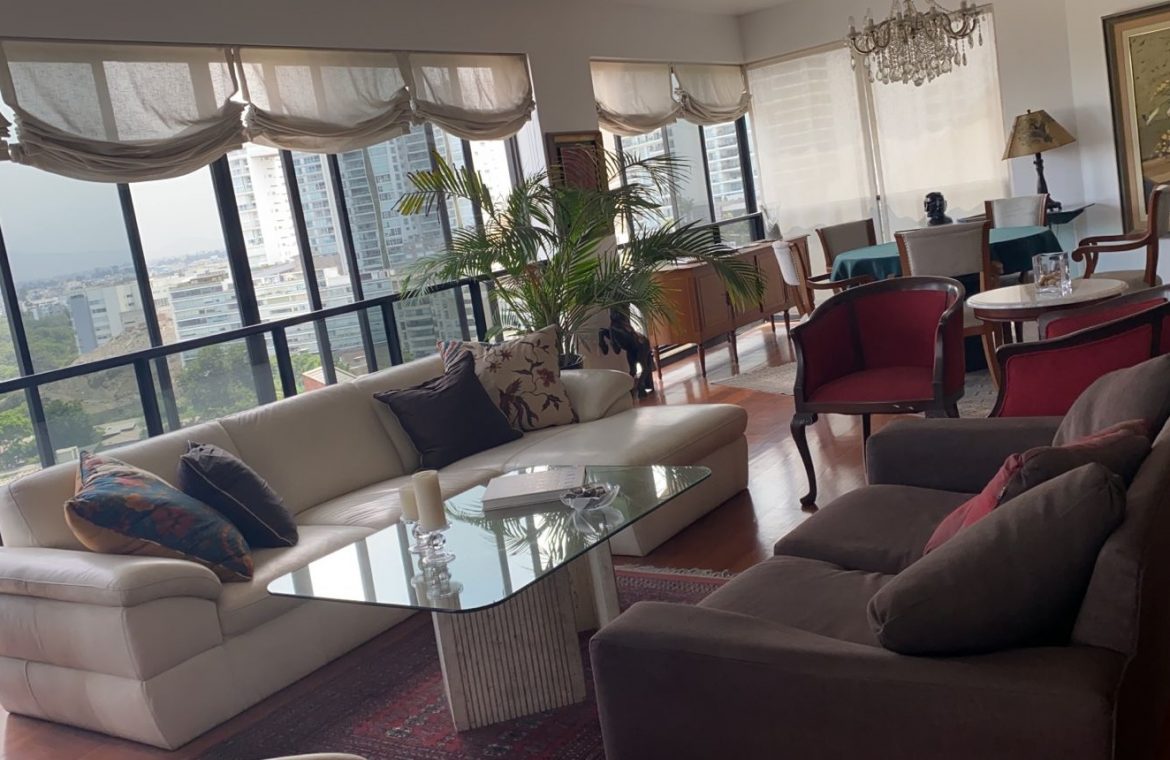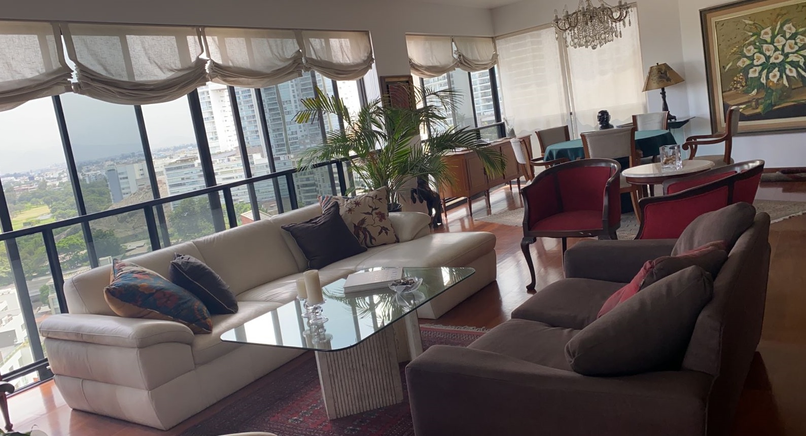 LINDO DEPARTAMENTO PENT HOUSE, UBICACIÓN PREVILIGIADA ESPECTACULAR VISTA AL CLUB GOLF LOS INKAS, CONSTA DE 4DORMITORIOS, 1 ESCRITORIO, 5 BAÑOS, 3 SALAS, 2 COCMEDORES, TERRZA, FINOS ACABDOS DE PIEDRA MALMOL, GRANITO Y DE MADERA, DEPÓSITO, PISO 6, 2 ASCENSORES, VIGILANCIA LAS 24 HORAS, EL EDIFICIO ES UN CLUB TIENE AREA COMUNES ZONA DE PARRILLA, PISCINA, GYM, SALÑON SOCIAL UBICADA AV.CERROS DE CAMACHO. AREA OCUPADA: 588M2 AREA CONSTRUIDA:440M2